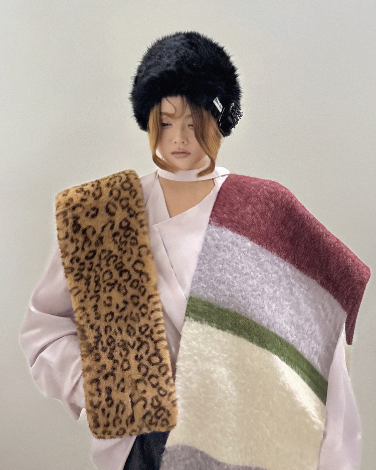 - 소재: Genuine Rabbit Fur Trim 100%, Polyester 100%, Acrylic Beads