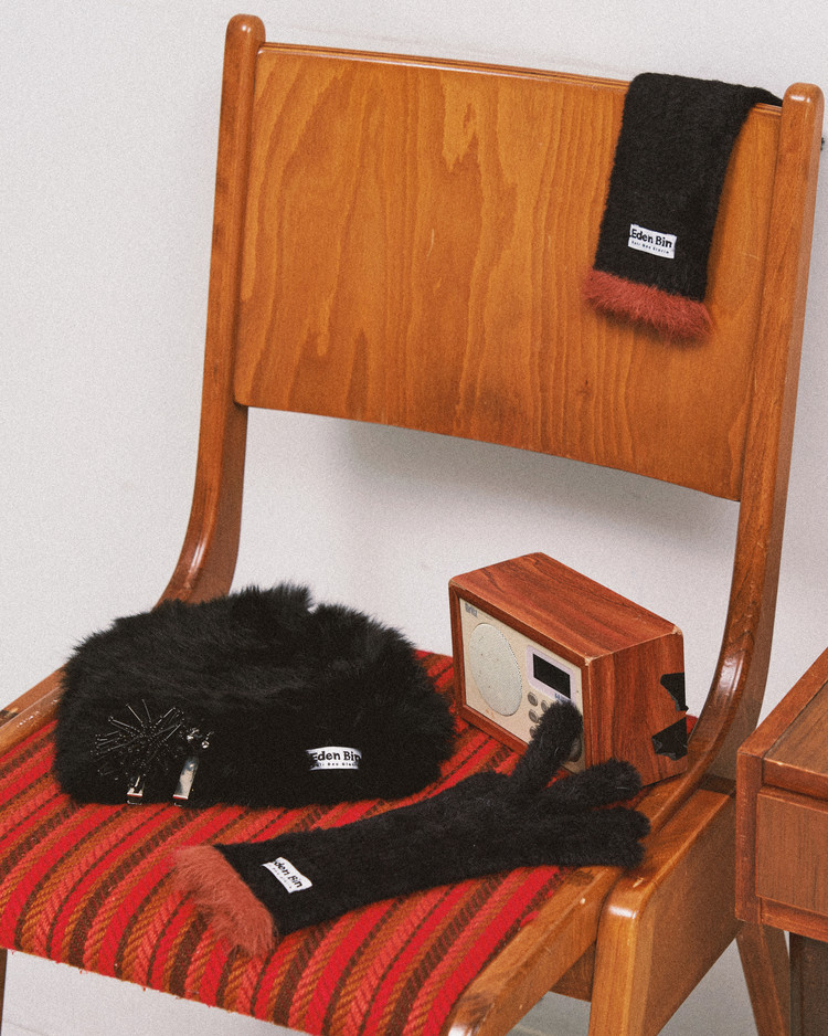 앞면에 위치한 자수 디테일이 돋보이는 이든빈 시그니처 라벨은